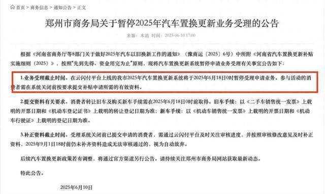 2025年6月以来,河南郑州、洛阳、重庆、新疆、沈阳等多地相继暂停了汽车以旧换新国补政策,此举引发了消费者的广泛关注。面对突如其来的政策调整,正打算购车的消费者陷入两难,到底是抓住最后窗口“薅羊毛”,还是等待下半年补贴重启呢?接下来我们就来全面分析一下。